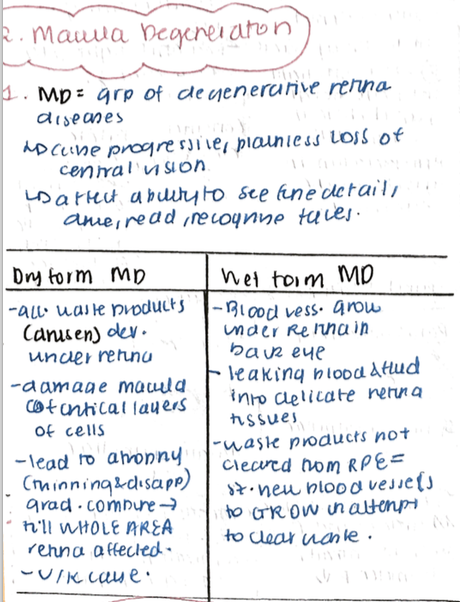 Define macula Degeneration and identify the two types of it