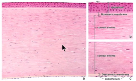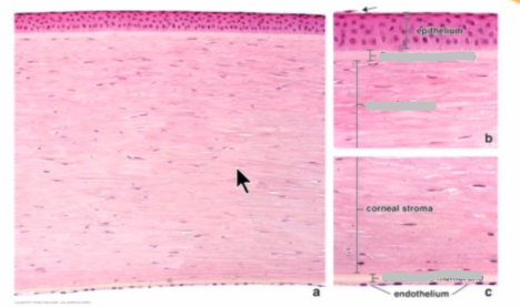 describe the epithelium and stroma of the cornea