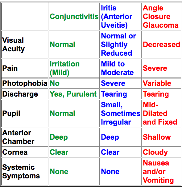 Differential diagnosis of a red eye
