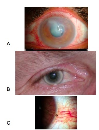 A. Keratitis: Infection or inflammation of the cornea (the centre portion of the eye that surrounds the pupil) & is usually accompanied by eye pain, photophobia, foreign body sensation, tears, & blurred vision.