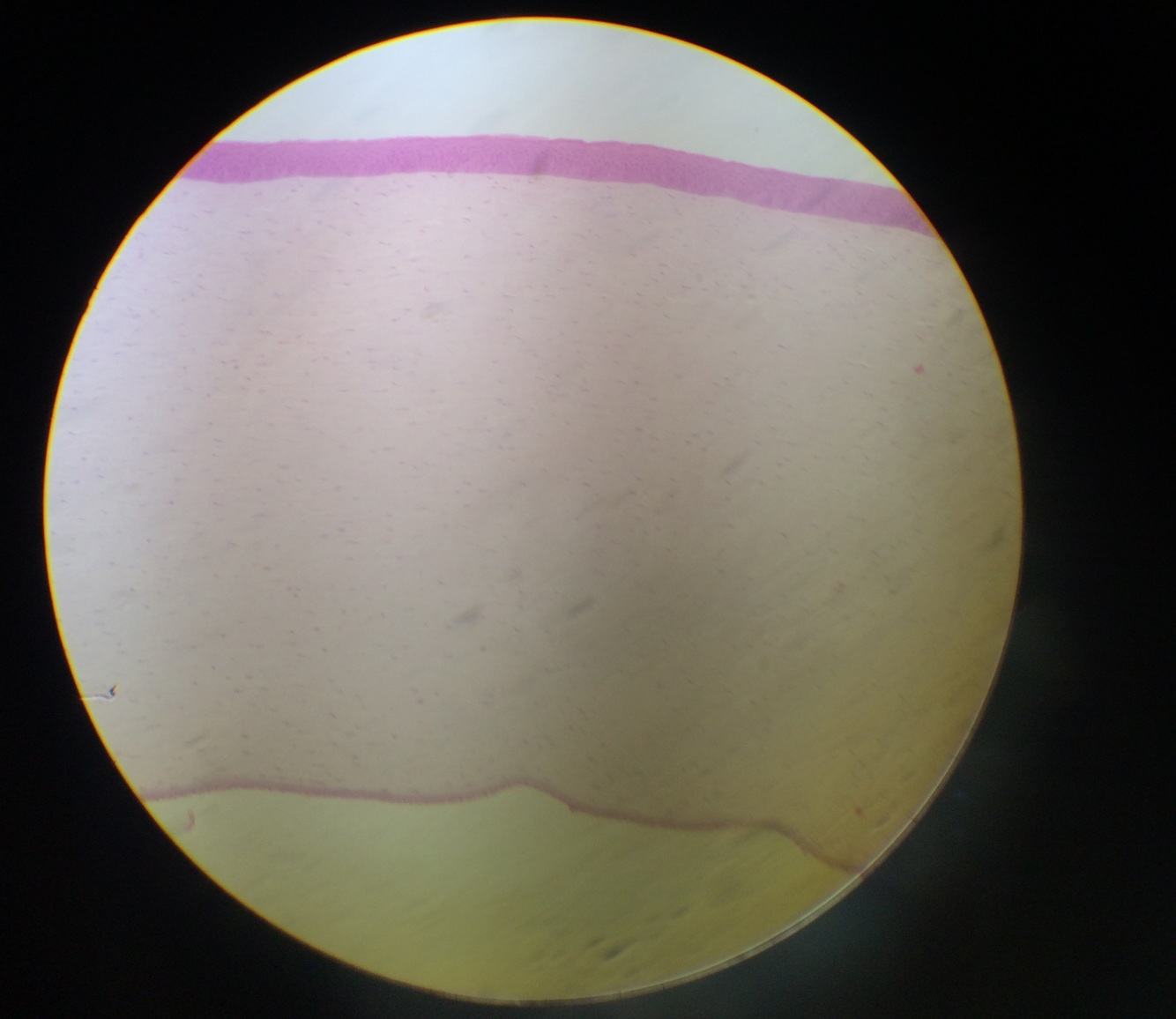 B) 1. Endothelium - of the anterior chamber, simple squameous epithelium, fibroblasts and pigmented cells