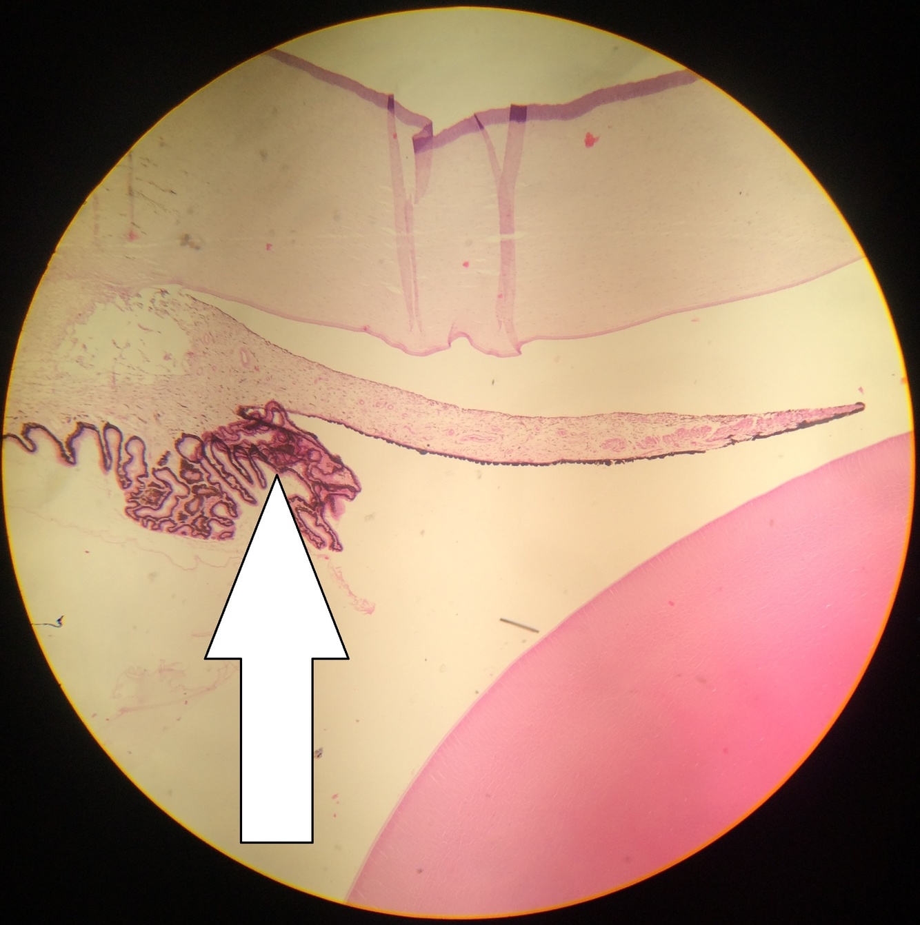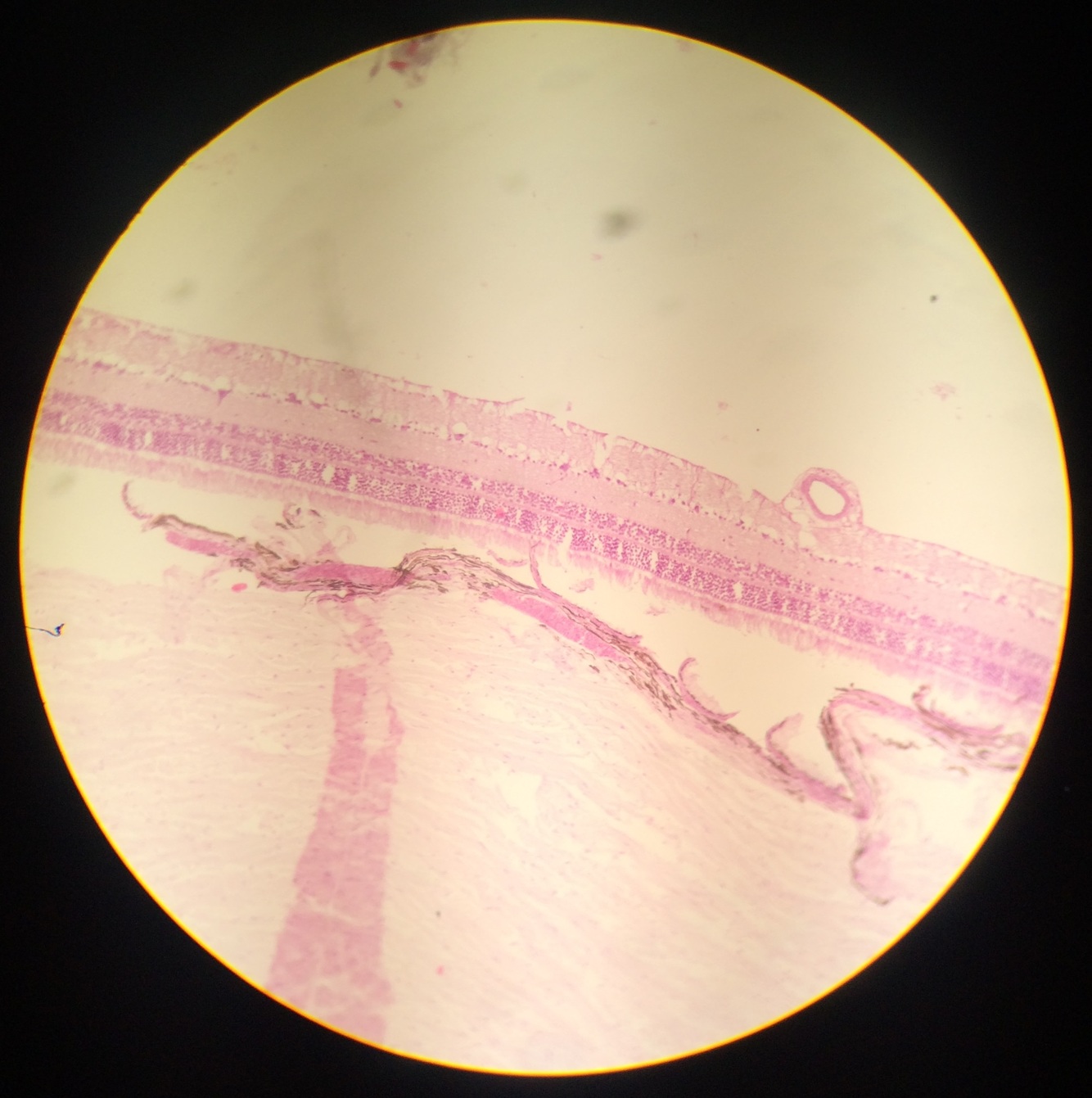 3) Part of the retina - two layers: unpigmented inner and pigmented outer