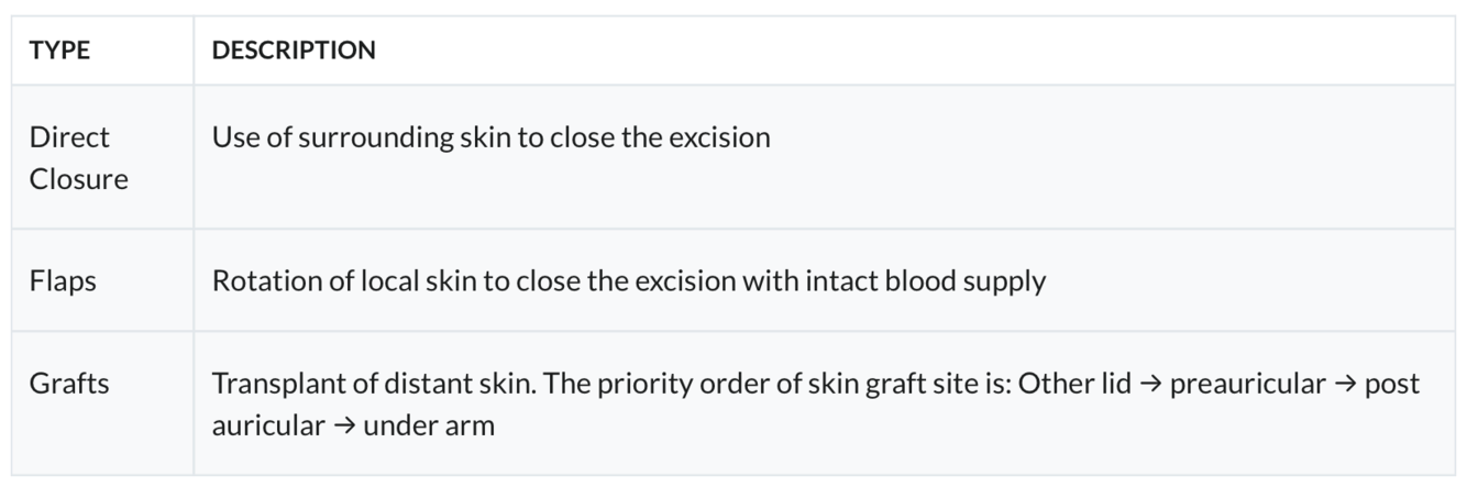 Types of lid reconstruction
