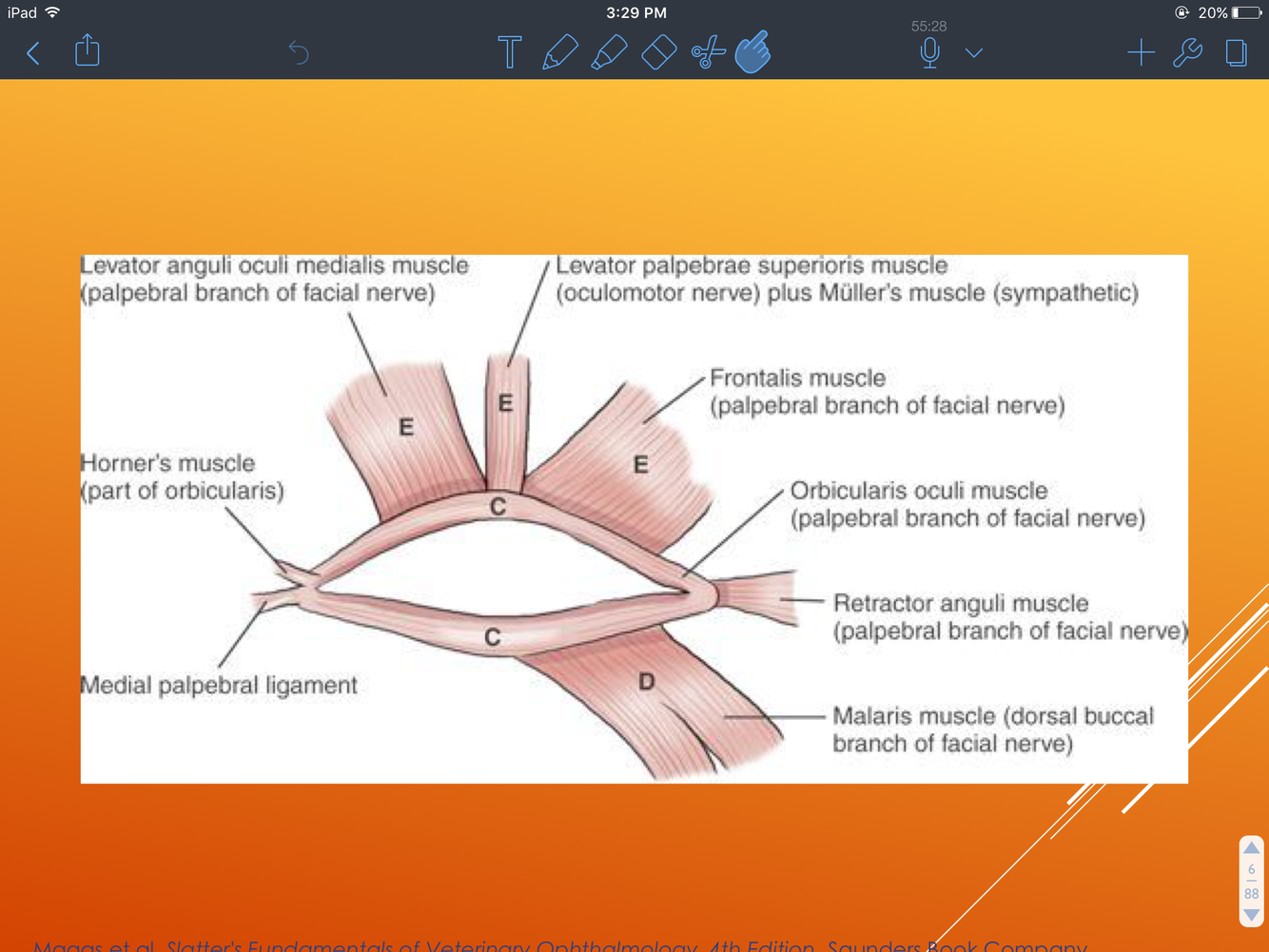 surrounds the palpebral fissure Attaches too orbital wall by medial and lateral palpebral ligaments