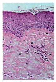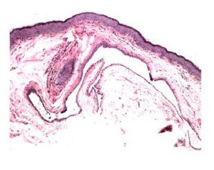 What is the characteristic of the epidermis? And what type of lesions are described in the second image?