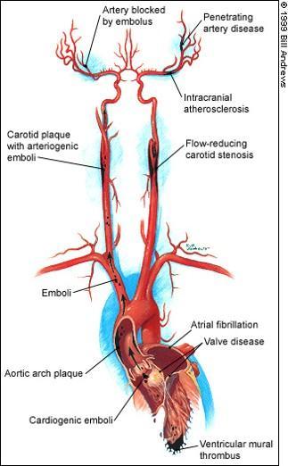 Usually patient will have a history of atrial fibrillation and there will be a blood clot that has travelled in the internal carotid artery and into branches and blocked them It is fibrin dependent and described as a red thrombus Fibrin due to blood stasis