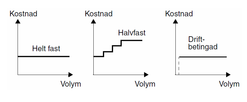 En rörlig kostnad ändras när tex produktions- eller försäljningsvolymen ändras men en fast kostnad påverkas inte av produktions eller försäljningsvolym.