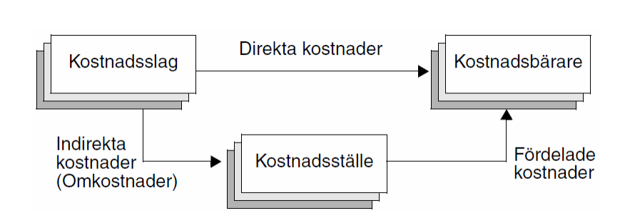 Direkt kostand kan kopplas direkt till ett kalkylobjekt medan en indirekt kostnad inte kan göra det. Det kan t.ex vara så att det kan kopplas till flera kalkylobjekt