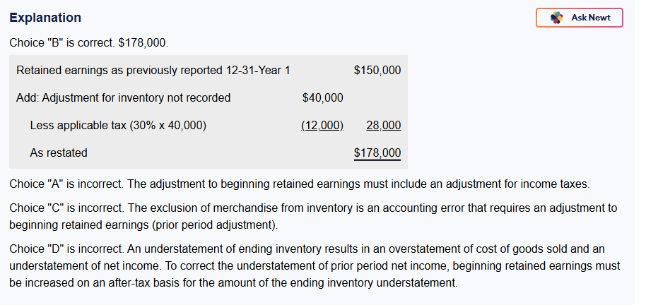Choices “C” and “D” are incorrect. Correction of prior period errors has no effect on the current year’s income statement.