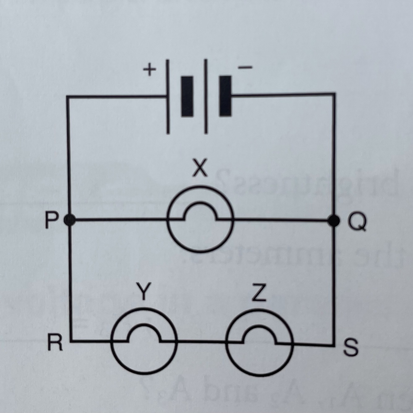 The resistance in PQ is low => current flow through PQ is higher => X is the brightest