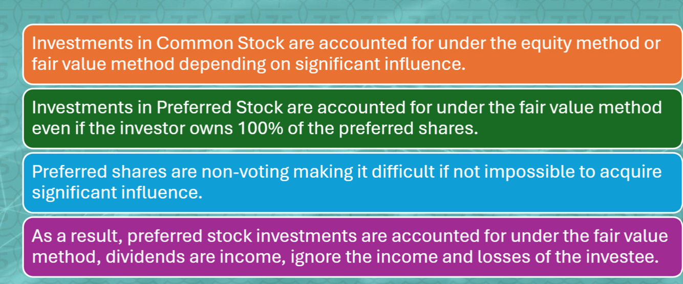 Investments in Preferred stock are accounted for under the