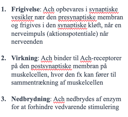 Forklar kort hvordan nervesystemet videregiver et signal, f.eks. acetylcholin: