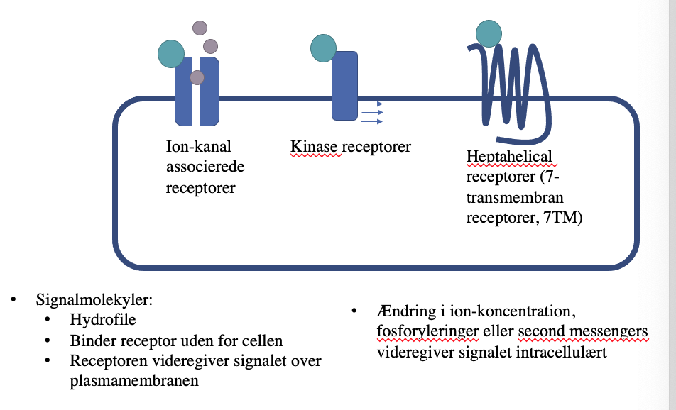 Sidder på overfladen, er target for hydrofile signaleringsmolekyler