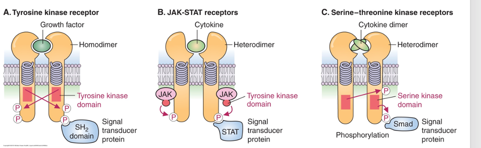 Nogle receptorer har selv kinaseaktivitet, mens andre binder eksterne kinaser.