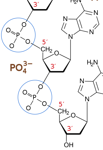 (de sidder sammen i fosfordiester bindingerne i DNA’et, men selvfølgelig ikke i enden)