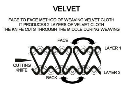 An example of a pile weave, a warp file woven fabric that has a soft, tactile surface. Can be made from silk or polyester.