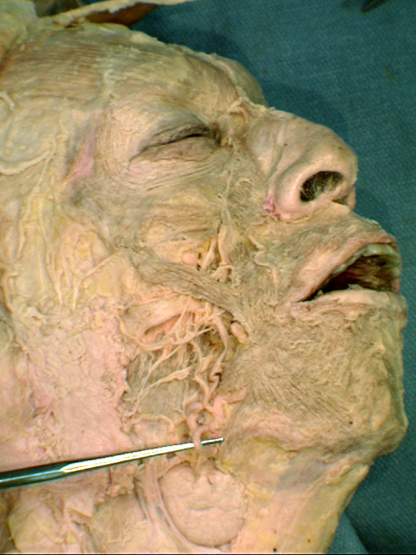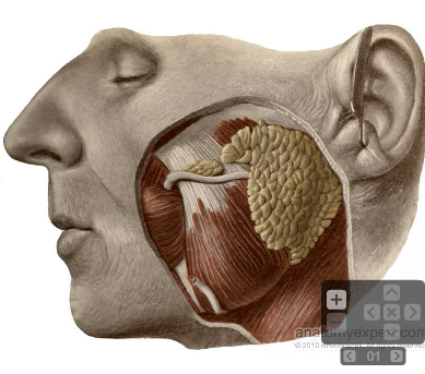 It is embedded in a groove on the under surface of the submaxillary gland. It then curves upward over the body of the lower jaw