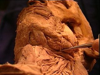 posteriro to the memaster. The fibers converge toward the angle of the mouth, where the central fibers intersect each other. different than the memsater which runs vertically.