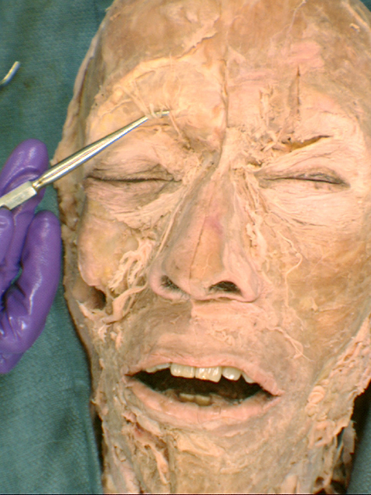 terminal SENSORY branch of frontal nerve of the ophthalmic nerve, Cr. V 1 of trigeminal