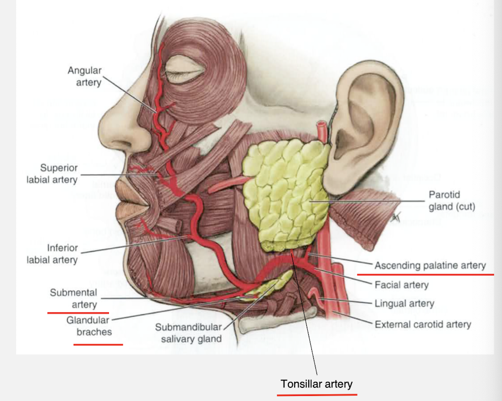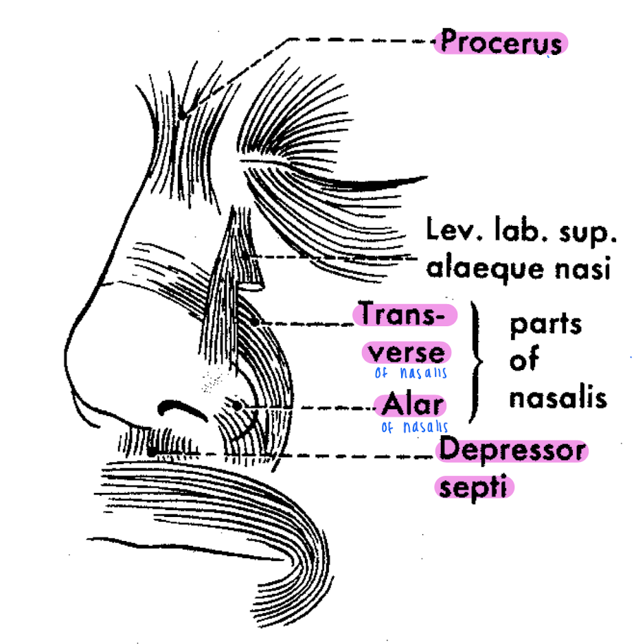 Anterior attachment: corners of mouth, blending w/ the orbicularis oris
