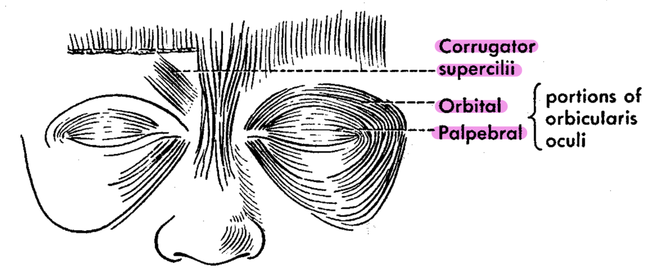 frontalis, orbicularis, oculi, & corrugator supercilli