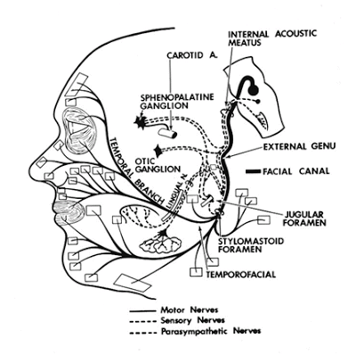 …in children = Moebius Syndrome, Hemifacial Microsomia, Forceps delivery, Herpes Zoster, Acute OM