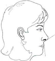The angle between the plane of the face and the nasal dorsum; usually 36 degrees