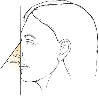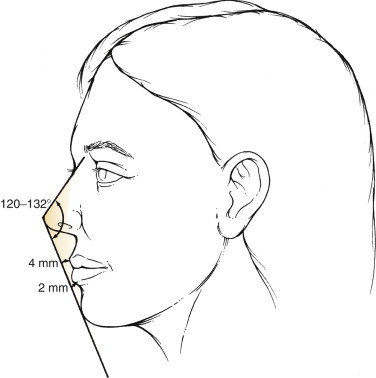 The lips should fall just behind this line at a distance of 4 mm for the upper lip and 2 mm for the lower lip.