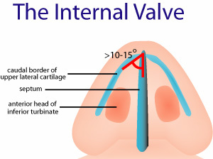 Internal nasal valve area borders are the septum, piriform aperture floor, head of the inferior turbinate and the caudal border of the upper lateral cartilage
