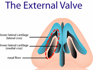 External nasal valve is formed by the nasal vestibule caudal to the INV.