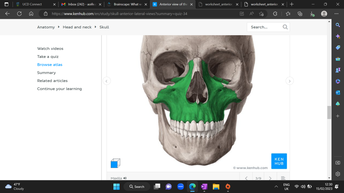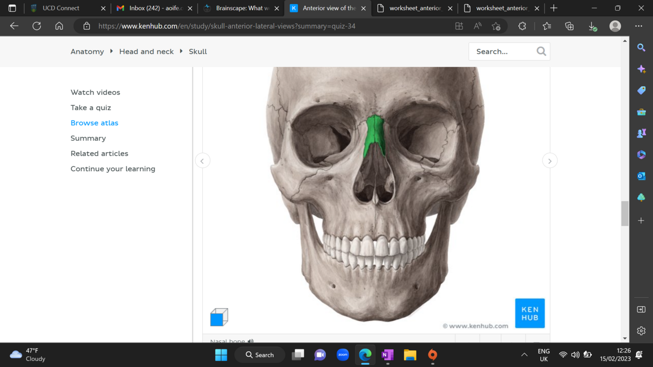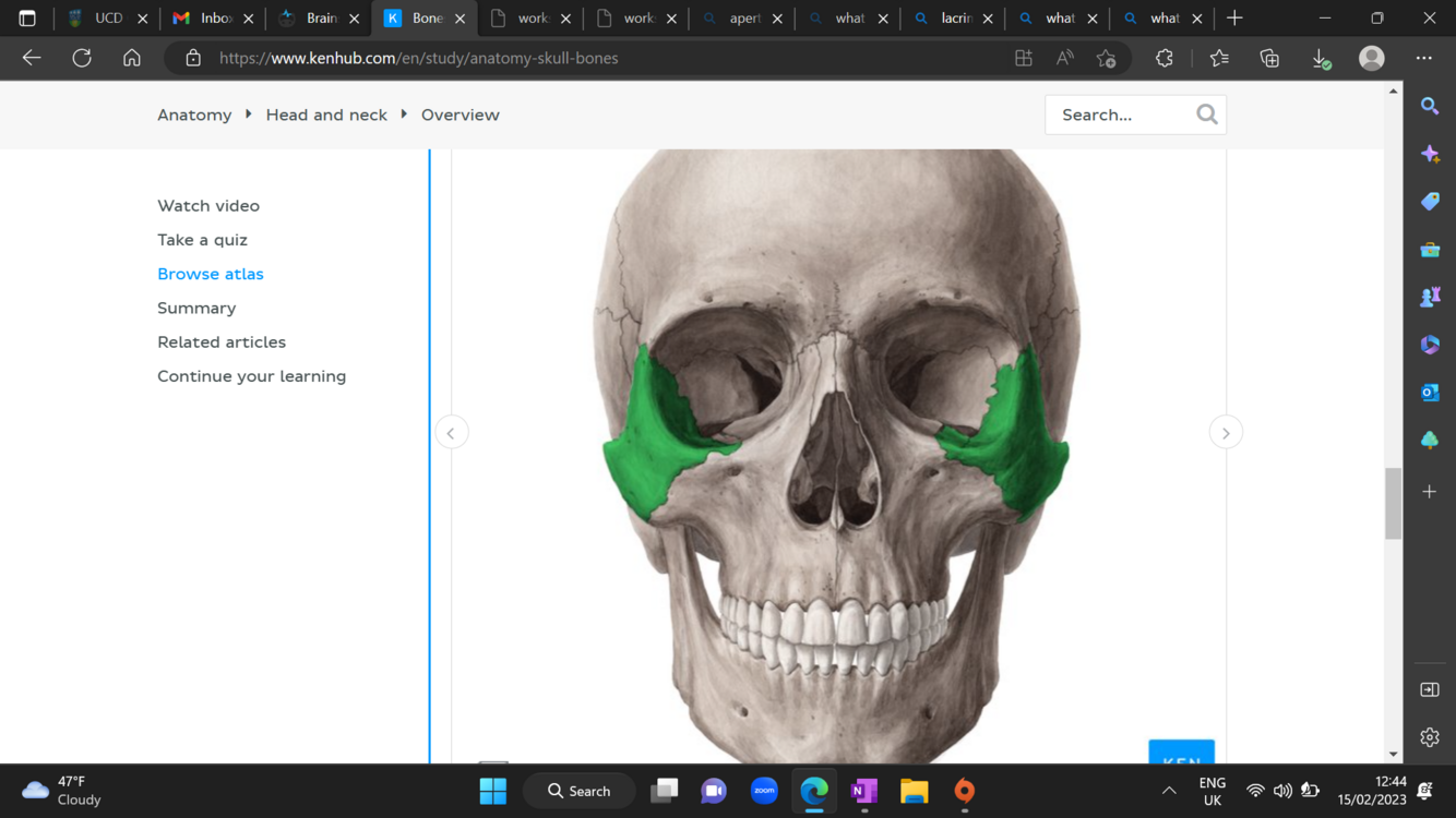 note NB -** zygomatic process** of the maxilla, frontal, zygomatic and temporal bone