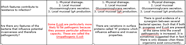 Which features contribute to resistance to infection?