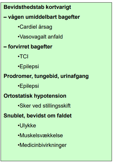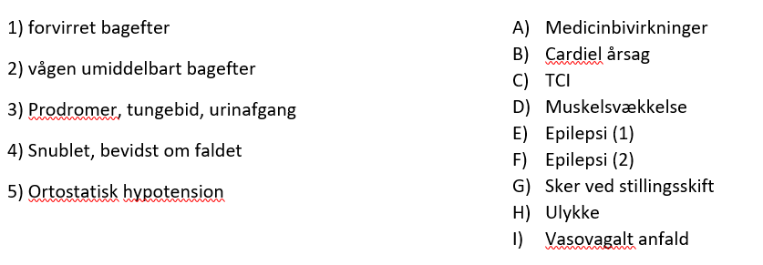 Et fald kan skyldes flere ting. Nogle har et kort bevidsthedstab mens andre ikke har. Sæt disse (A, B, C…) sammen med de passende (1, 2, 3…)