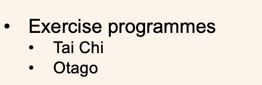 Which exercise programmes are used in falls prevention?