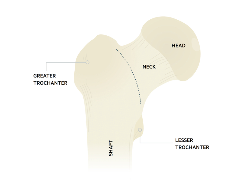 Head, neck Greater and lesser trochanters