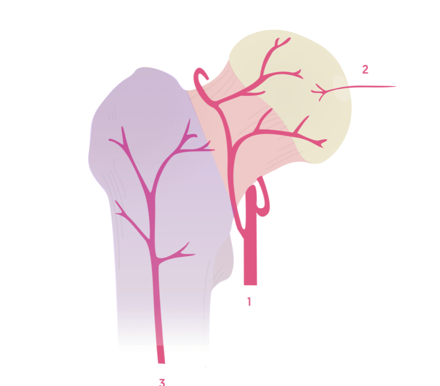 What are the 3 sources of blood supply to the femoral head?