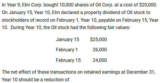 Ole Corp. declared and paid a liquidating dividend of $100,000. This distribution resulted in a decrease in Ole’s
