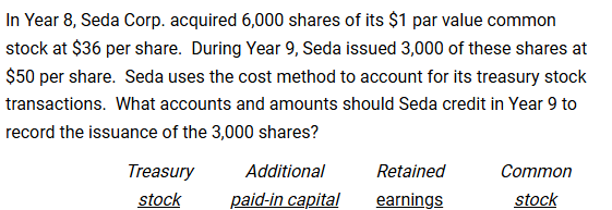 So in order to answer this question, it may look overwhelming however, if you know how to calc. for APIC or if you had understand (in Excerpt) that Treas. Stk is recorded at cost.