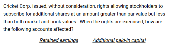 Understand that when the exercise price is > PAR it will always be an APIC increase, but RE are not affected.