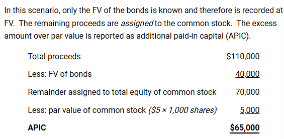On July 1, Year 1, Cove Corp., a closely held corporation, issued 6% bonds with a maturity value of $60,000, together with 1,000 shares of its $5 par value common stock, for a combined cash amount of $110,000. The market value of Cove’s stock cannot be ascertained. If the bonds were issued separately, they would have sold for $40,000 on an 8% yield to maturity basis. What amount should Cove report for additional paid-in capital on the issuance of the stock?