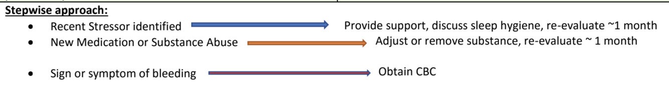 what is there are no new stressors, meds, or symptoms of bleeding?