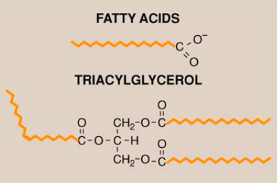 Structure of triacylglycerol/triglycerides (form of free FA storage)