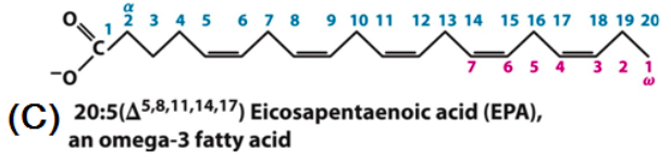 Ex) “Omega-3” indicates the carbon that begins a double bond numbered this time from the w- end.
