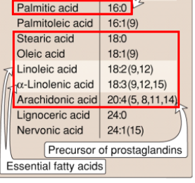 Linoleic acid: must be supplied in diet