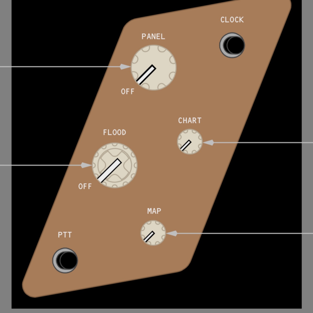 left controls left forward and center forward instrument panel lights and standby magnetic compass brightness