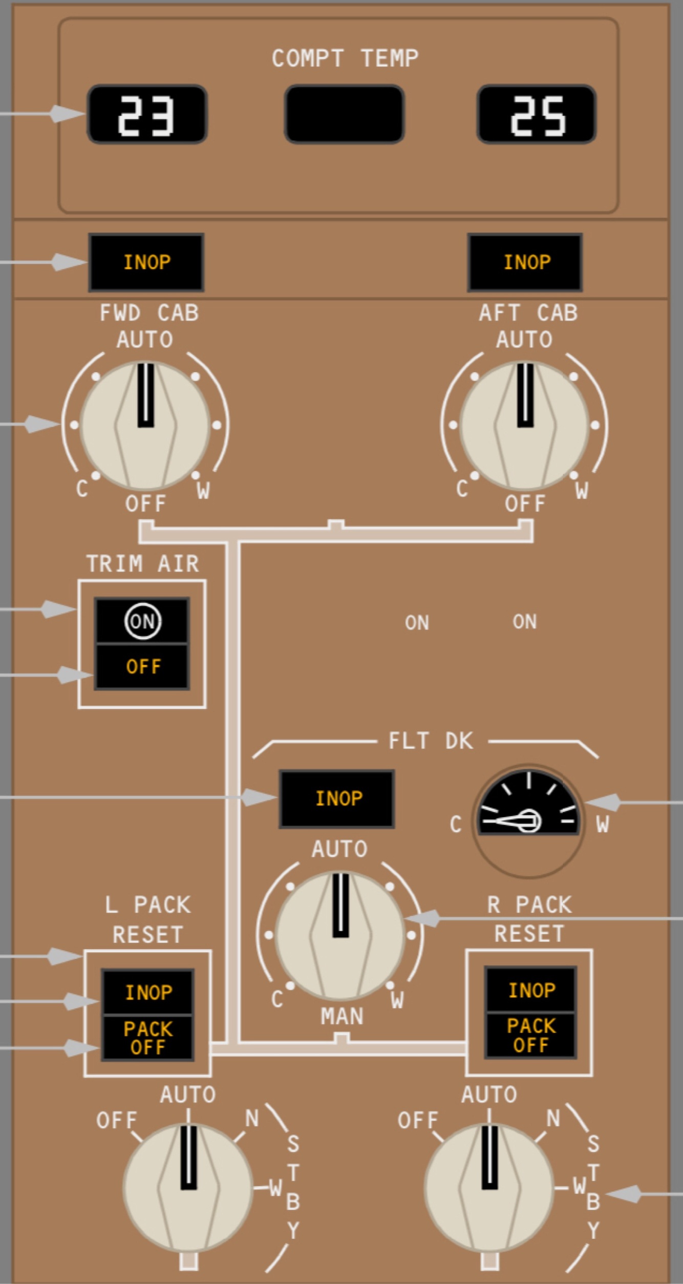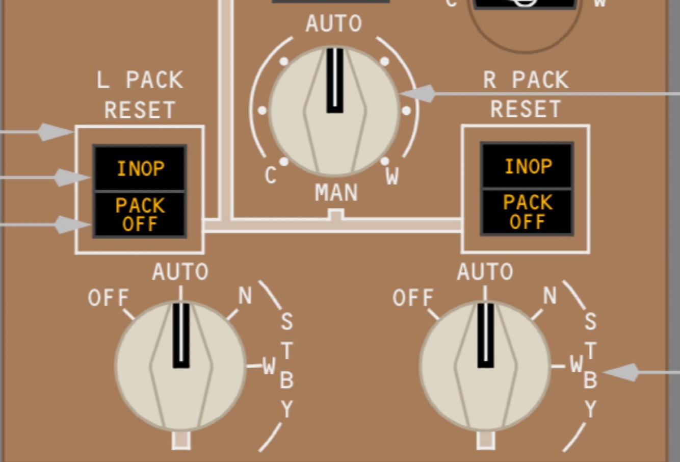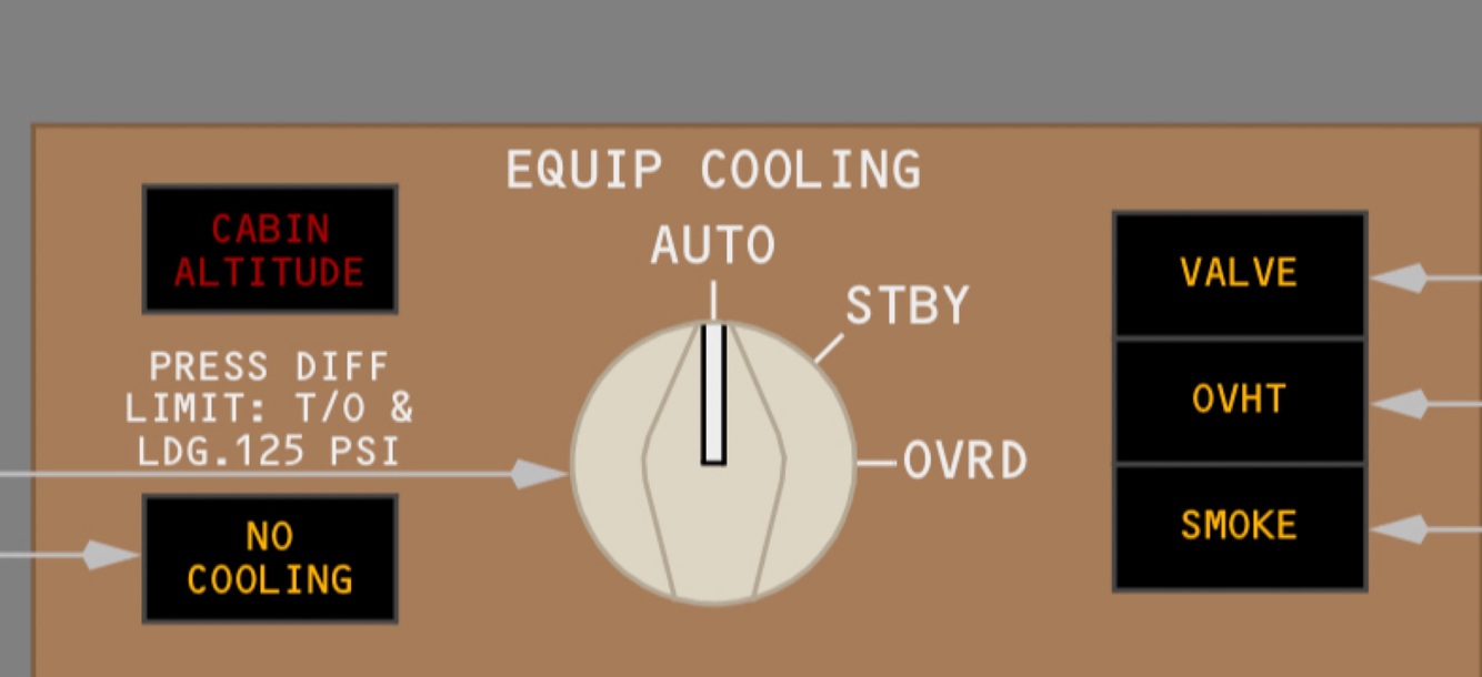 STBY – positions equipment cooling system for inboard air flow.