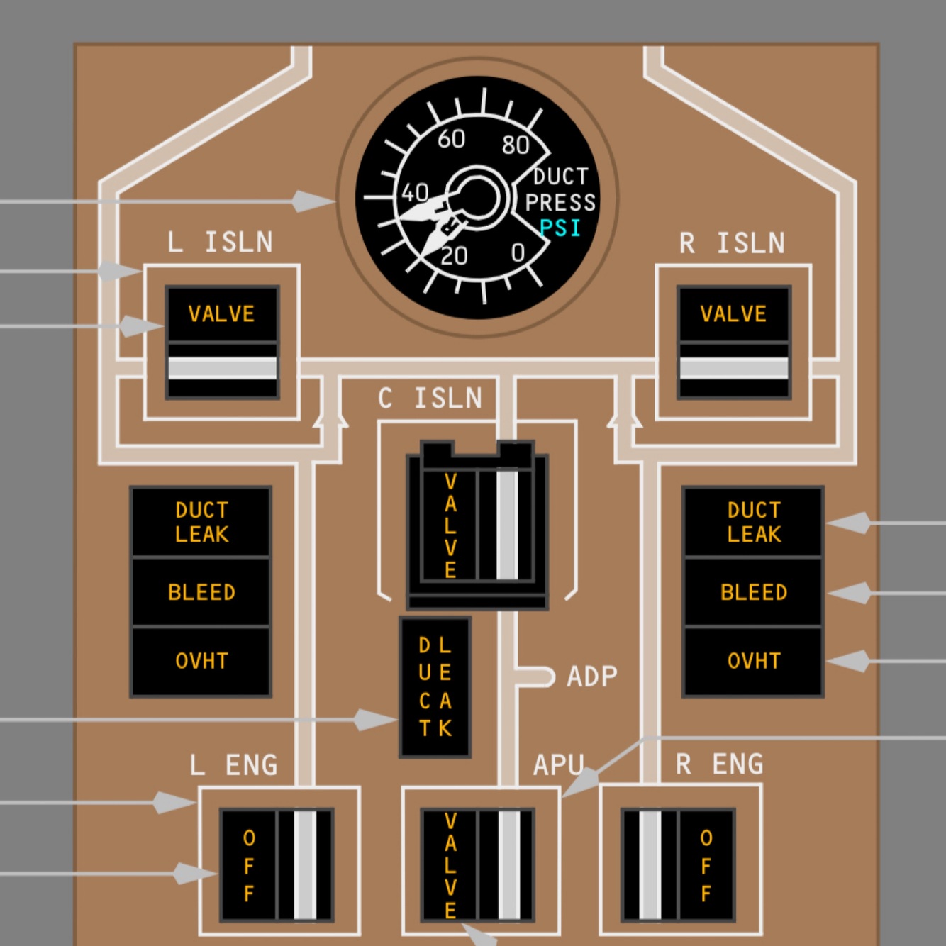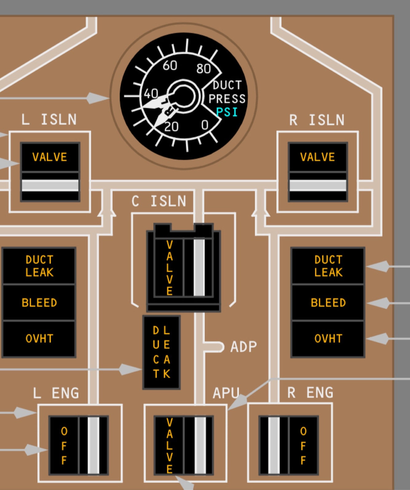 Pg 133 what does the DUCT LEAK,BLEED and OVHT lights illuminated mean ?