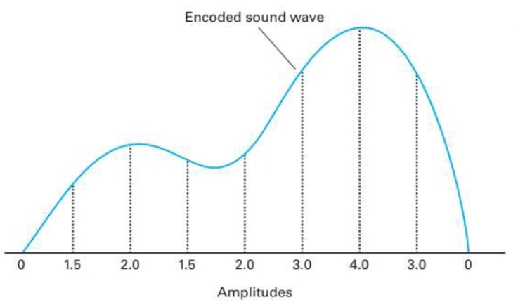The amplitude of the sound wave is recorded at regular intervals through sampling, then sampled data is encoded to binary sequence.