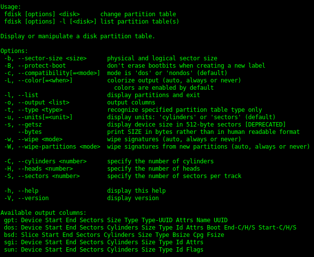 fdisk -o, –output [OUTPUT COLUMNS]