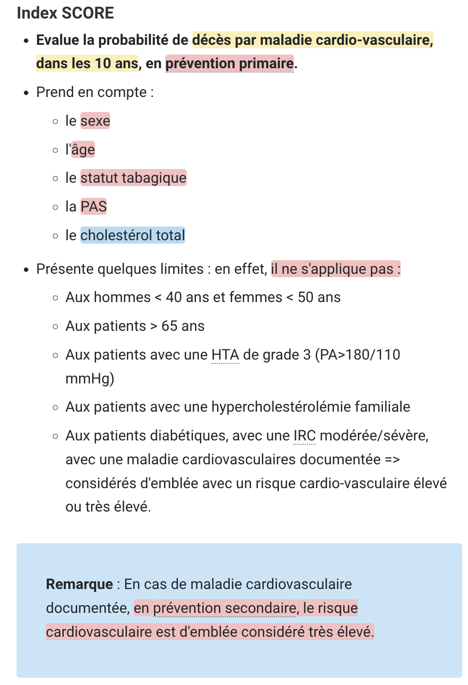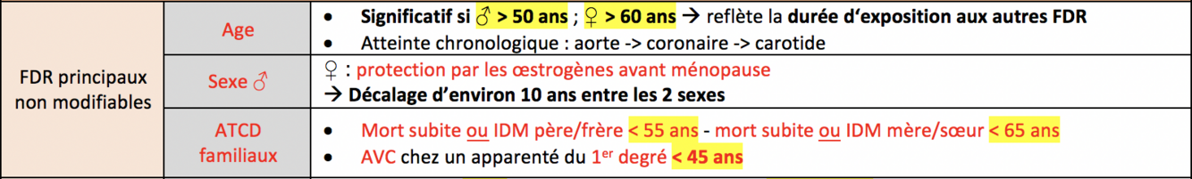 Risque cardiovasculaire de chaque FDR CV